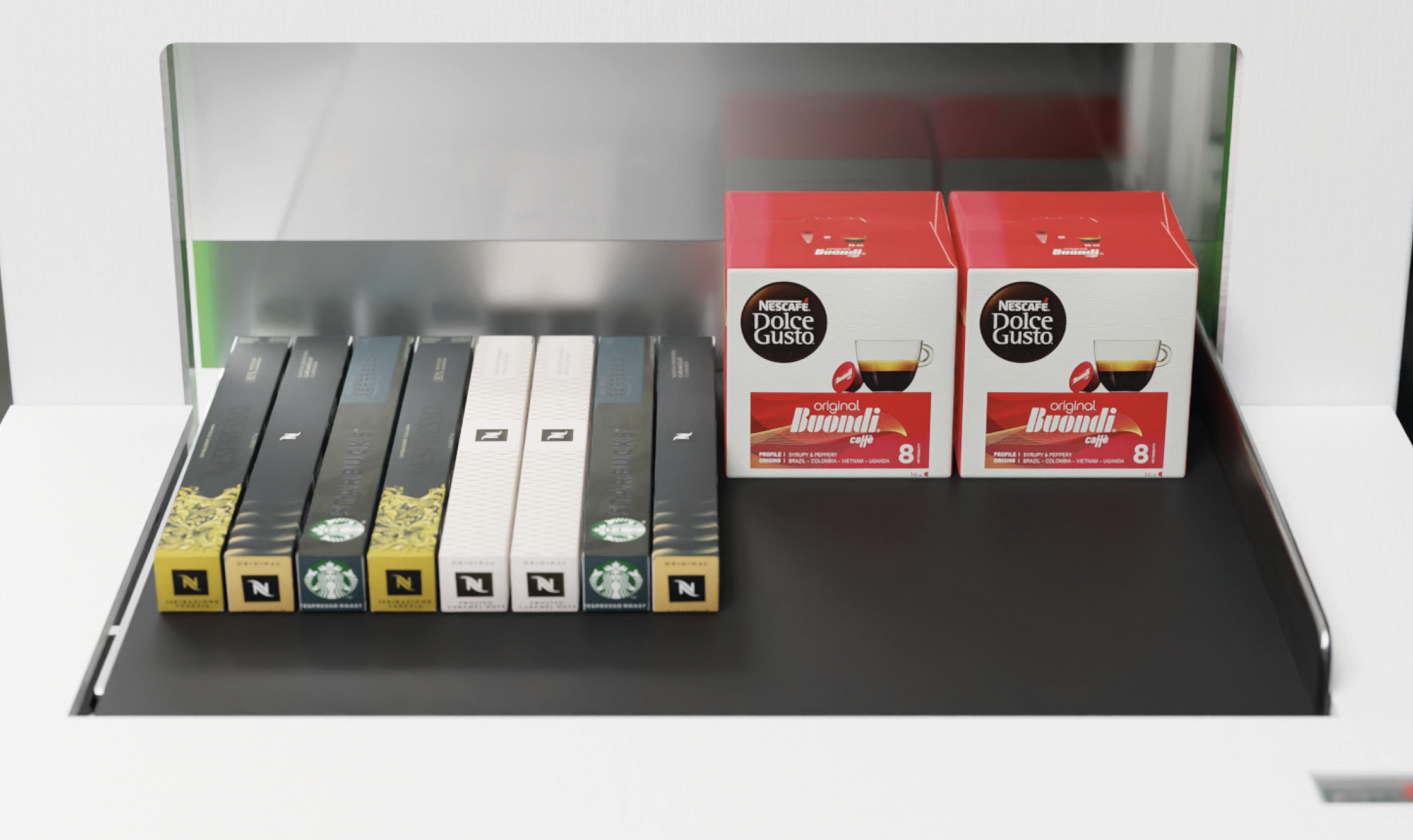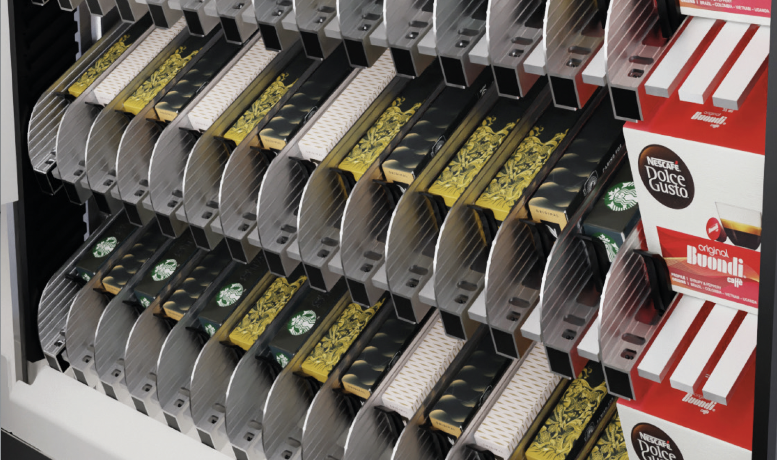 Replacing the classic glass cabinet with a fully digital touch-control version for an extremely user-friendly solution that greatly extends the range of products available 24/7 outside the warehouse